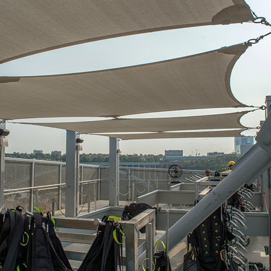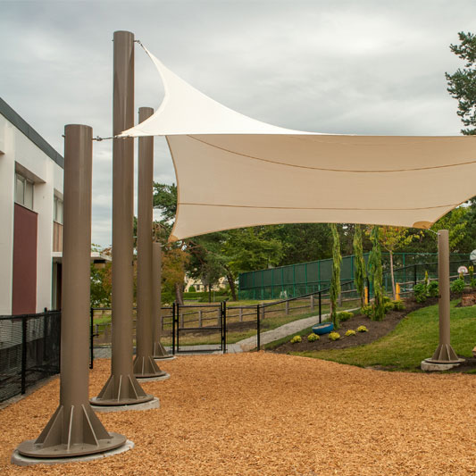 The most critical part of any shade structure, without proper footings you can’t tension fabric safely. We engineer all of our commercial installations based on local codes and wind ratings to ensure the highest levels of safety and to ensure the life of your fabric structure. Post sizing is specific to each job, however, we never use anything less than high-grade structural steel. Using this quality of steel also allows us to place the posts in a less obtrusive fashion by correctly supporting the spanned fabric over your area.