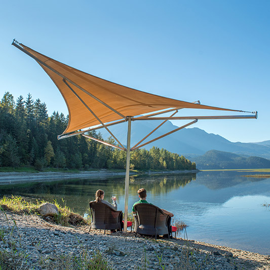 Our Cyclone umbrellas offer a more traditional shape and are used frequently with playgrounds, restaurants and many other businesses who need to provide maximum amounts of shade with a single post.