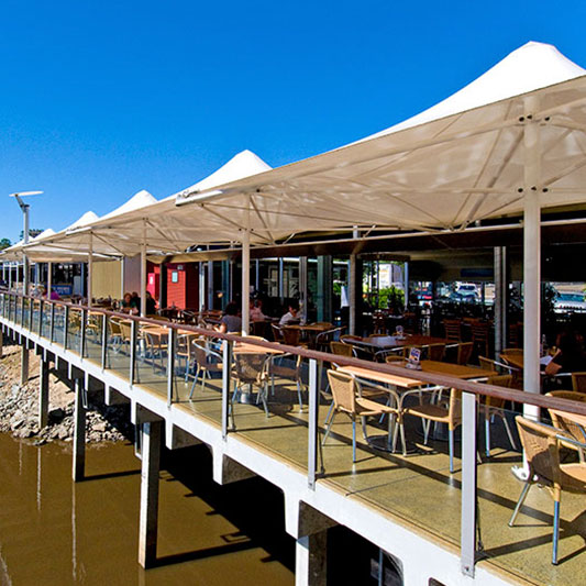 There are many different types of shade cloth; at TensArch we only use the highest quality cloth to ensure maximum amounts of UV protection and to ensure the life of your fabric structures. On most structures, we use Monotec 370, a high-grade monofilament cloth with 15-year UV stabilisation warranty. Weather-max cloth offers a lightweight, waterproof solution for smaller structures and we can also offer an all-weather vinyl, which is a coded full-weather mesh.