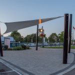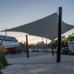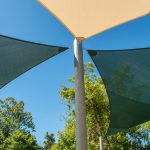 Large Span Ability – Free-span structures, in particular, can cover large areas of 60ft+ easily with a single sail. Continuously shaded areas have been shown to lower the temperature of an outdoor space significantly compared to intermittent shade created by umbrellas, for example.