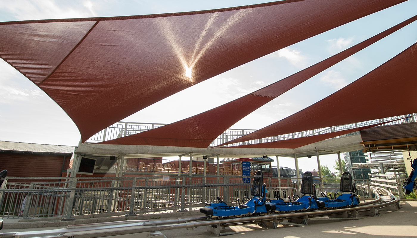 Sun Exposure – Whether your facility caters to spectators or customers lining up for tickets or a ride, standing in the sun for long periods of time is dangerous and can have long term health implications. We use only the highest quality shade fabric, which offers up to 98% UV resistance and comes with a minimum 10-year UV warranty with some fabrics offering up 15 years.