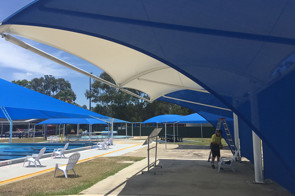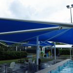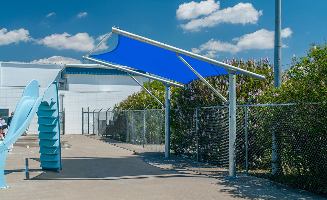 When shading a water-based facility, our primary consideration is the protection of the facility’s users from both the sun and from any footings we install. The combination of wet surfaces and lots of movement create issues with footings so we commonly use either large spans to keep posts out of the way or we cantilever the fabric over the area being shaded. Water facilities also cater to users who wear fewer clothes than normal, which can be problematic during the summer months as users of the facility are more susceptible to the harmful effects of the sun. We aim to provide maximum amounts of shade while being as unobtrusive as possible. Popular products for these kinds of facilities include cantilever, framed, and free-span structures.