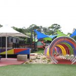 Minimal Footings – Unlike the majority of our other structures, the footing for a Cyclone umbrella is limited to a single post. This makes them great for areas where participants, staff or other users of the space need to move around the structure freely.