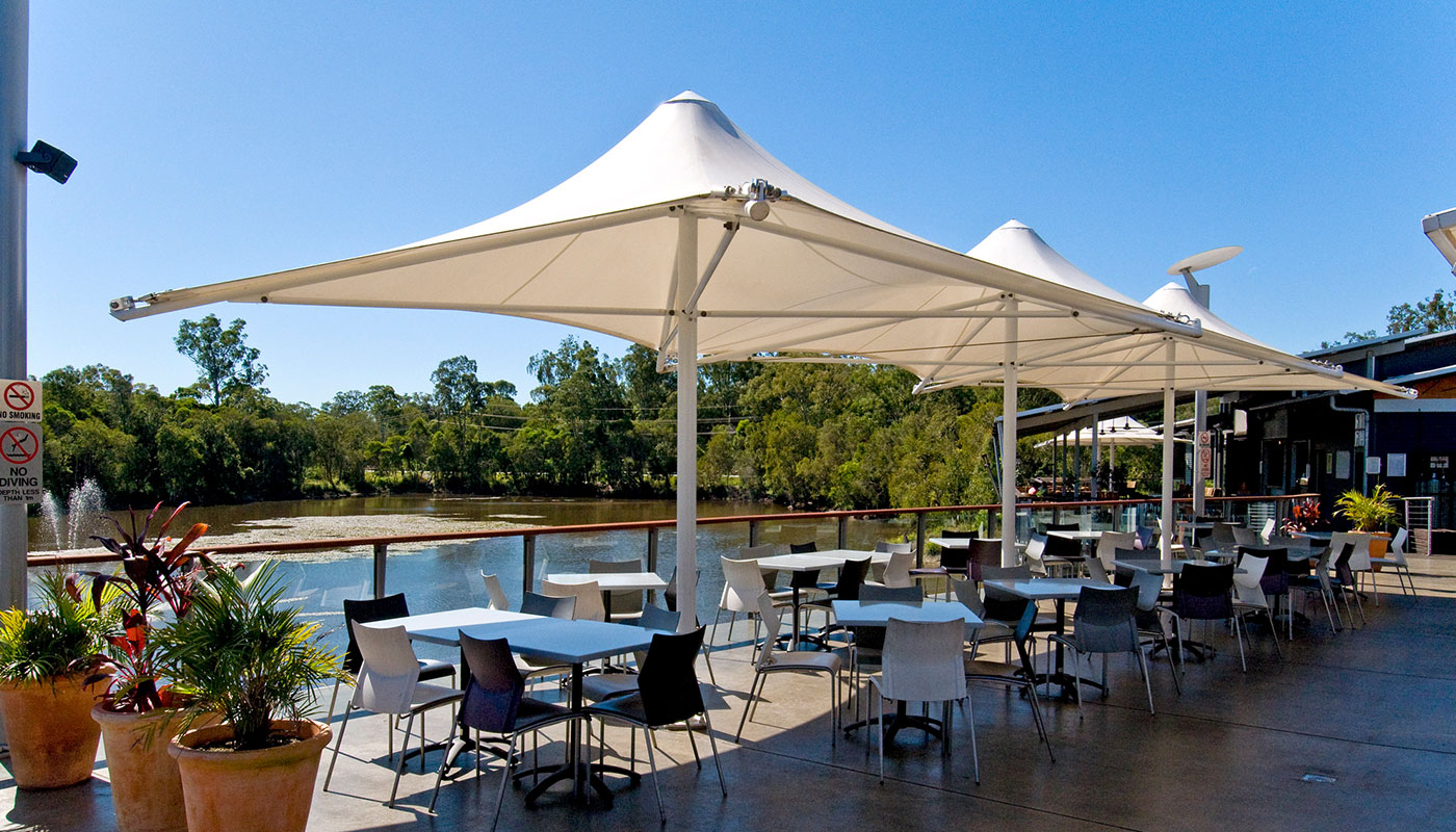 Minimal Engineering – Cyclone Umbrellas are pre-engineered in set sizes, which speeds up the installation process. Footings are substantial to support the load but these structures can be erected within a single day creating shade for your space quickly and efficiently.