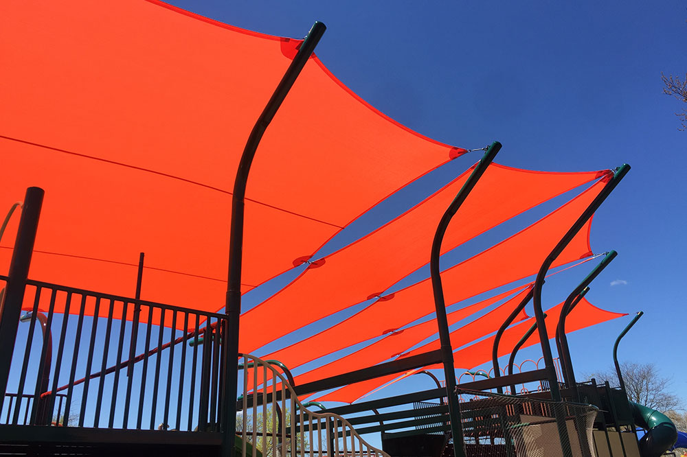 Large Span Capability – Our posts and footings are engineered specifically to support high amounts of load, which allows us to use large sails spanning over 60ft to create large amounts of shade without having to use posts in the middle of your space. This also enables us to create the maximum amount of shade in a single installation instead of chaining together smaller structures like umbrellas.